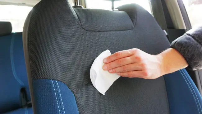 Nawilżane ściereczki szybko usuwają zabrudzenia ze wszystkich tkanin w samochodzie.