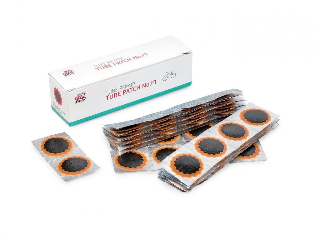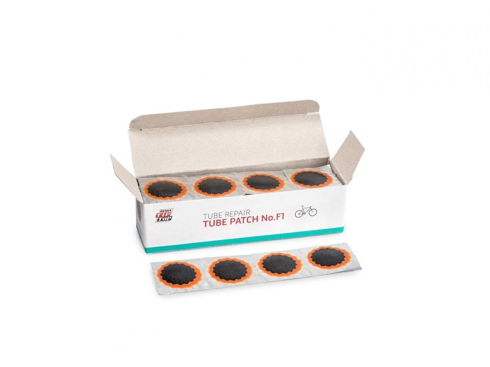 Łatka nr F1 o średnicy 25 mm służy do naprawy uszkodzeń dętek rowerowych, w rozmiarze uszkodzenia ograniczonym wielkoscią materiału naprawczego.