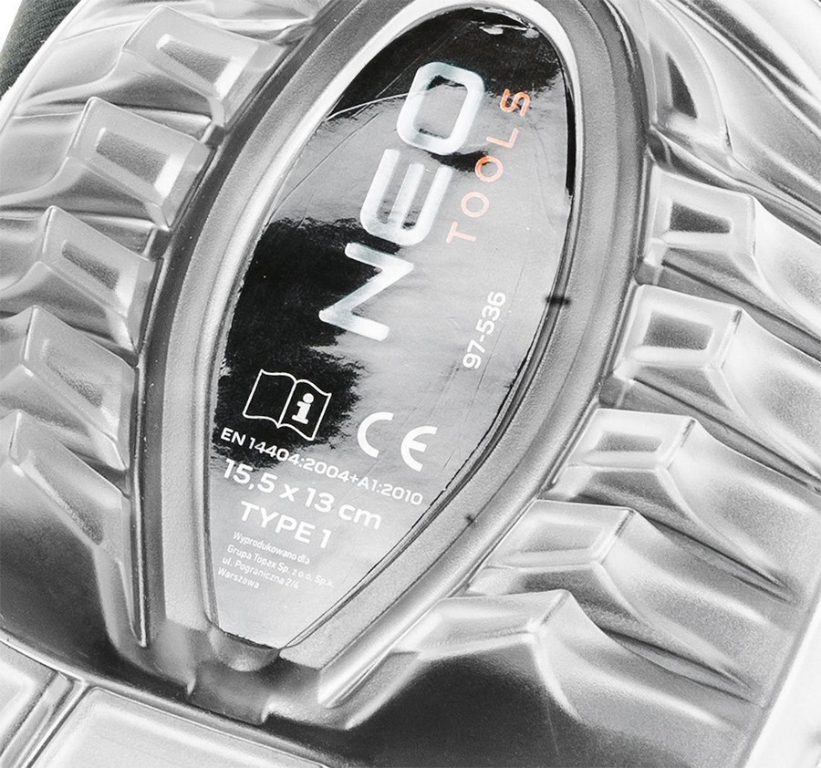 Nakolanniki NEO (nr ref. 97-536) zapewniają ochronę kolan przed obiciami i otarciami. Plastikowa nakładka niweluje nierówności, co znacznie poprawia komfort pracy. Dodatkową ochronę zapewniają wkładki żelowe, które absorbują uderzenia. Elastyczne paski z neoprenu, regulowane za pomocą rzepów, utrzymują nakolanniki na miejscu zachowując wygodę użytkowania. Oznaczenie CE to gwarancja bezpieczeństwa dowodząca, że produkt spełnia wszystkie unijne wymagania.
