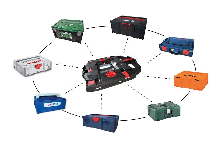 Umożliwia zamontowanie niemalże wszystkich systainerów dostępnych na rynku narzędziowym na odkurzacze produkowane przez Starmix ISC 25/50 litrów, ISP, iPulse Basic