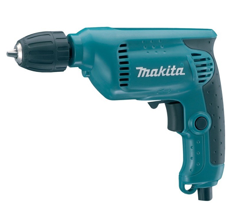 Mała poręczna wiertarka z mocną obudową o konstrukcji półskorupowej z tworzywa sztucznego wzmacnianego włóknem szklanym