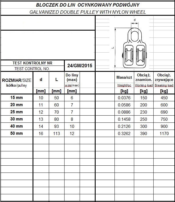 BLOCZEK DO LIN STAŁY , PODWÓJNY 50 mm .
