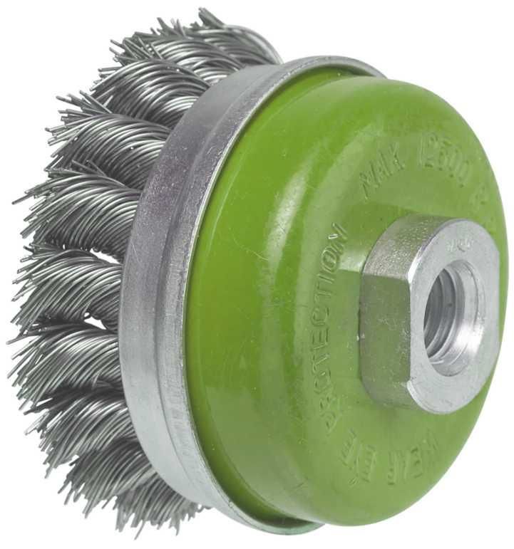 Ze skręconych drutów stalowych, do cięższych prac przy oczyszczaniu i obróbce powierzchni.