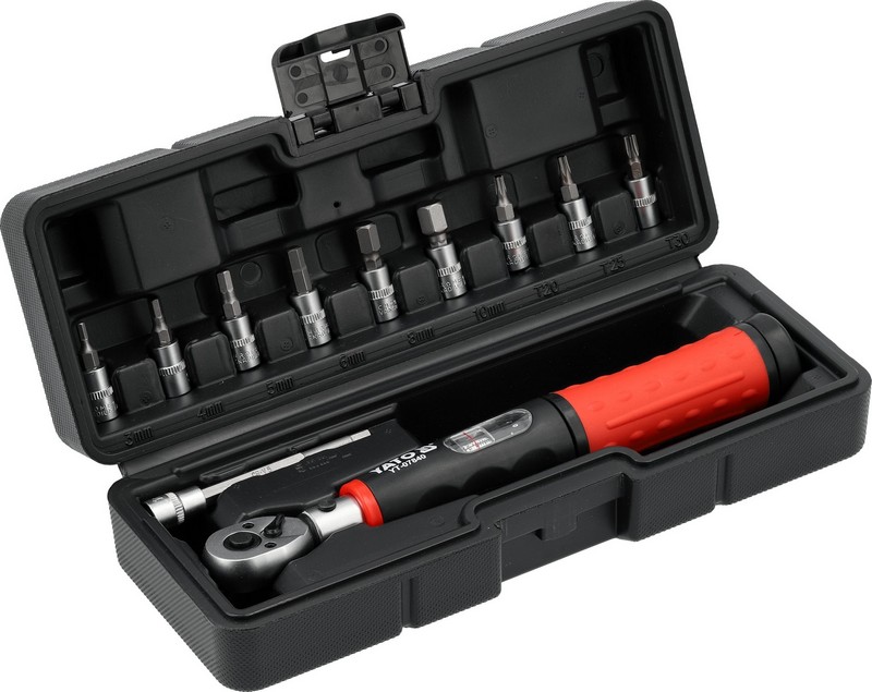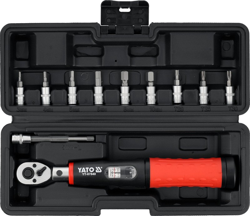 Zestaw z kluczem dynamometrycznym precyzyjnym YT-07840 to narzędzie przeznaczone do kontrolowanego dokręcania połączeń śrubowych w zakresie niskich momentów.