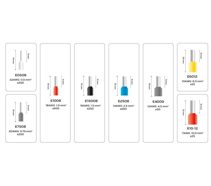 do tulejek o przekroju 0,25 – 100 m2, AWG 23-7.