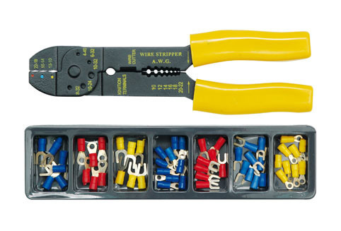 Szczypce do zaciskania konektorów + konektory w kasecie