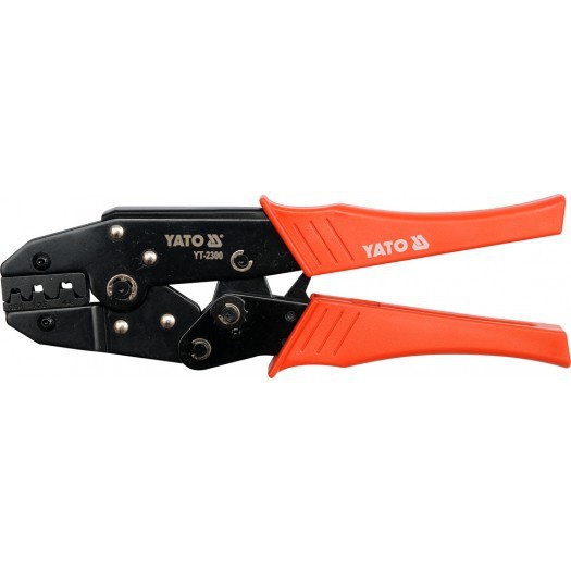 Profesjonalne szczypce z mechanizmem zapadkowym przeznaczone do zaciskania końcówek konektorowych na przewodach. Wykonane z blachy stalowej, utwardzanej do ok 44-47HRC. Obsługują konektory w zakresie od 0,5 do 6,0mm2