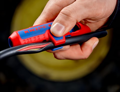 Do szybkiego i precyzyjnego ściągania izolacji z kabli solarnych o przekroju 4 i 6 mm2 (np. H1Z2Z2-K) oraz wszystkich standardowych kabli okrągłych i odpornych na wilgoć (np. kabel NYM 3 x 1,5 mm2 do 5 x 2,5 mm2)