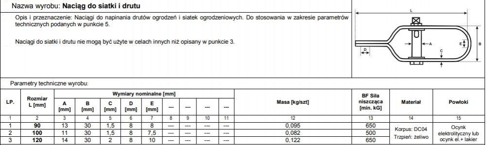 Napinacz siatki 090mm czarny