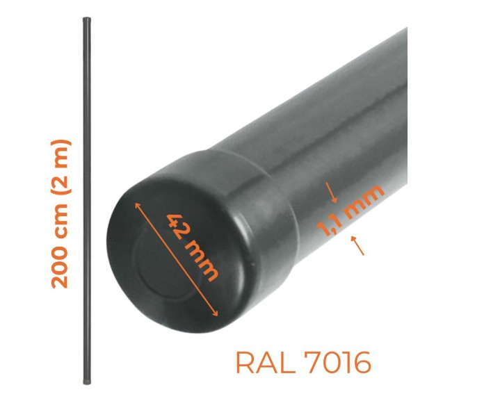 Słupek metalowy ogrodzeniowy, kolor antracytowy (RAL 7016).