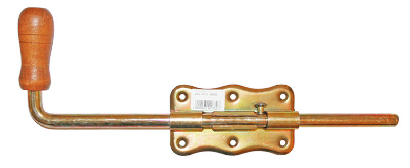 Uniwersalna zasuwa ryglowa ocynkowana z drewnianą rączką.