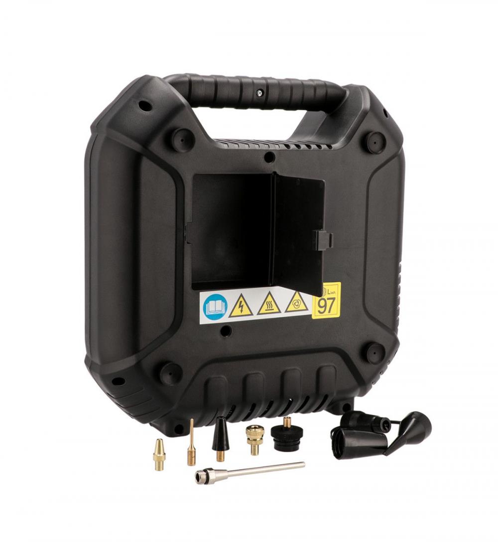 Mobilne zastosowanie: Doskonały do pompowania materacy, pontonów, dmuchanych zabawek i innych akcesoriów podczas wyjazdów, biwaków czy wypadów na świeżym powietrzu. Dzięki walizkowej formie, urządzenie jest łatwe do transportu i przechowywania.